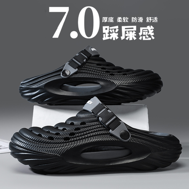 2024夏の新しい洞窟靴男は糞感の厚い底のスリッパを踏んで滑り止めの柔らかい底の外は通気性のビーチサンダル男を着ます。