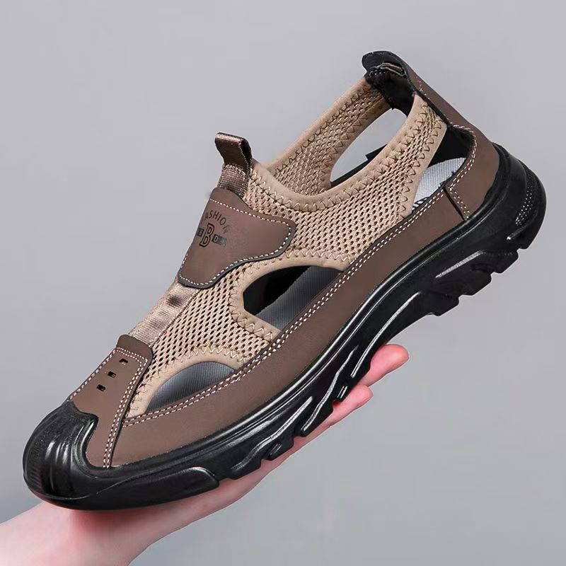 夏の通気性男性包頭サンダル透かし彫り網面洞靴屋外滑り止め軽量運動レジャービーチ靴