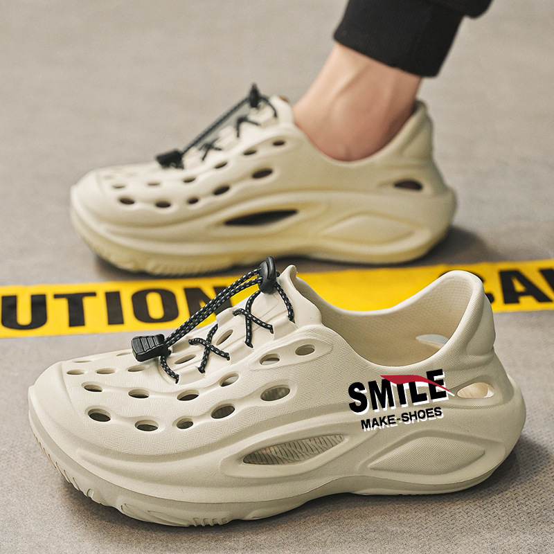 穴の靴の男性は夏にファッションの軽いevaビーチを履いて外に出ます。