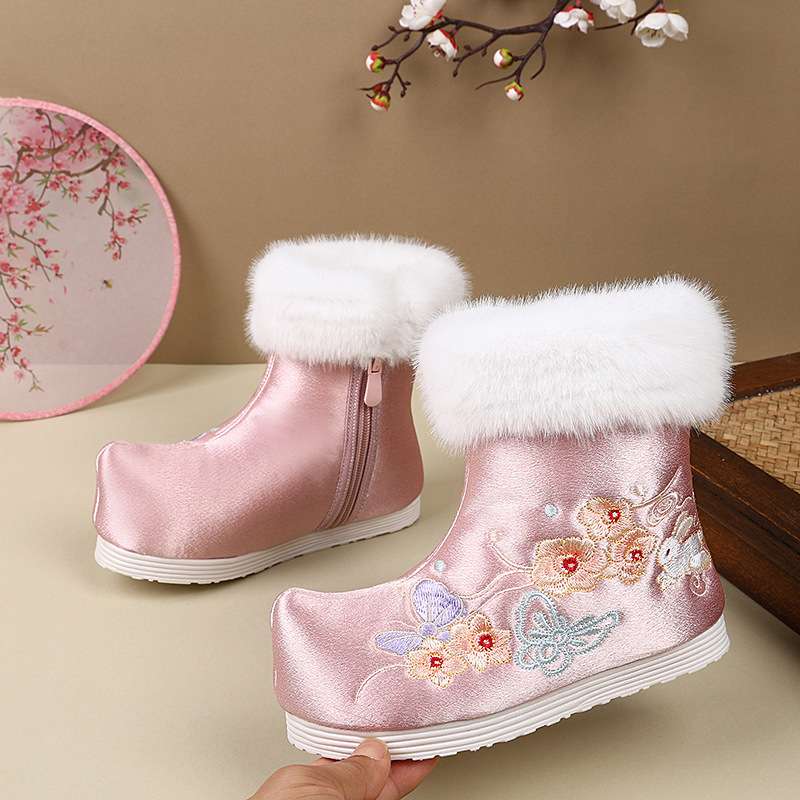 【彩蝶】2024冬の新型中国風少女刺繍靴児童靴古風漢服靴冬綿靴
