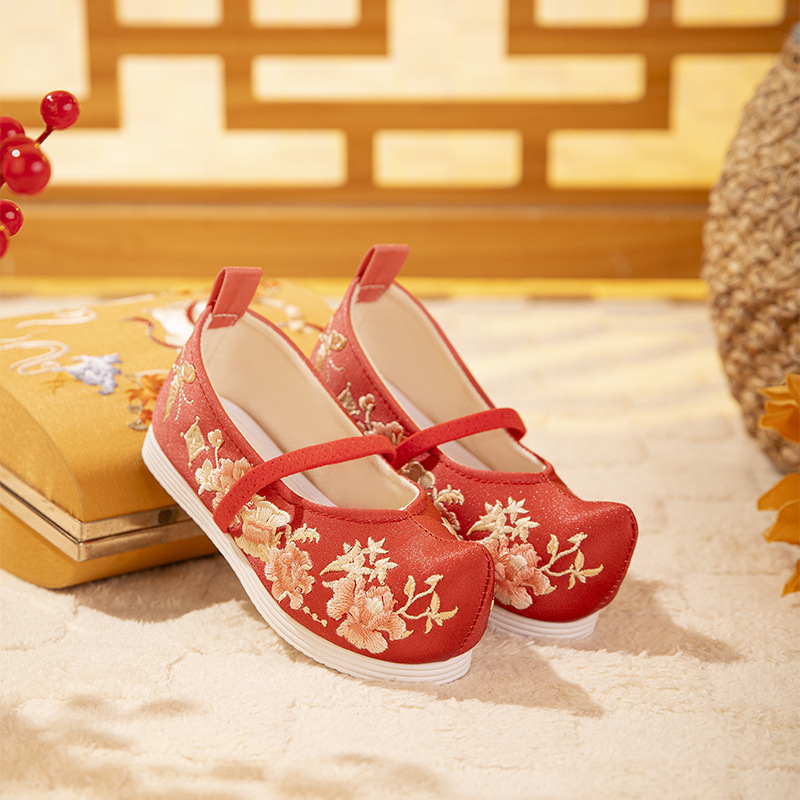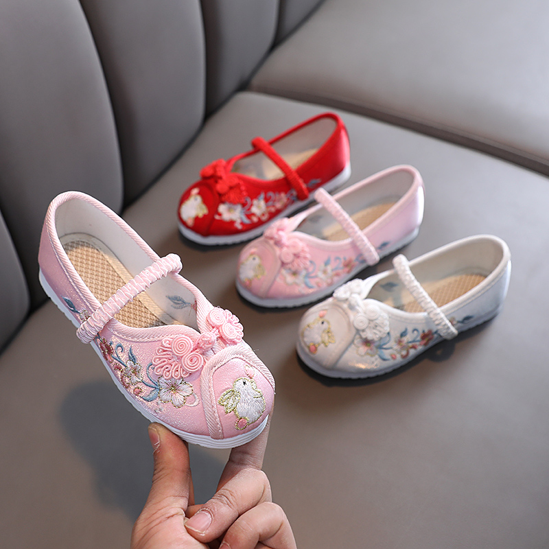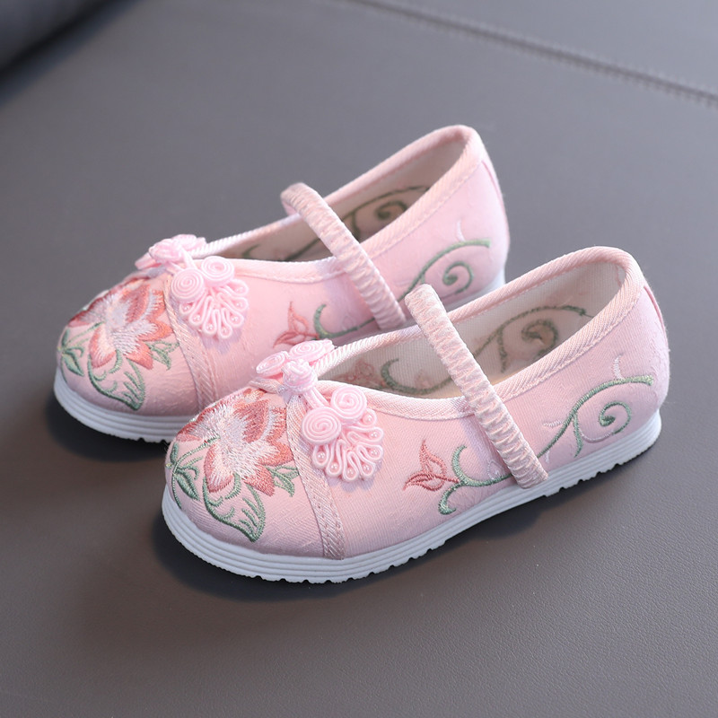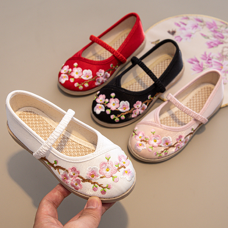 古い北京漢服靴女の子中国風春ダンス靴子供布靴古風古着手作り刺繍靴