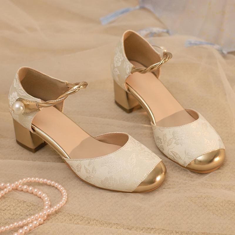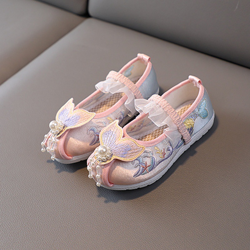 笛莎女童靴漢服靴6-12歳王女靴真珠刺繍とチャイナドレス中国式女の子靴新製品