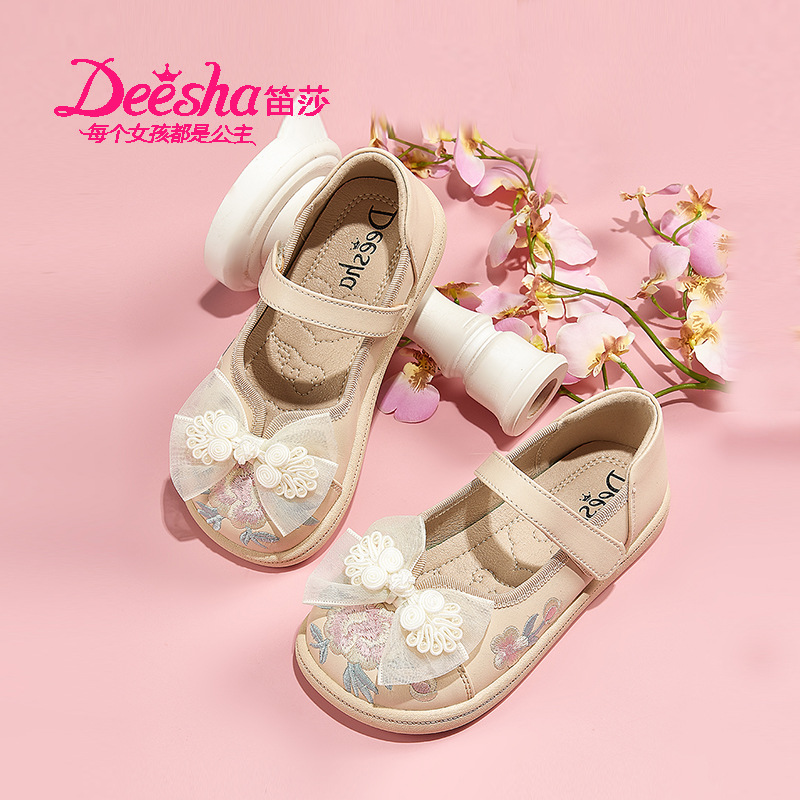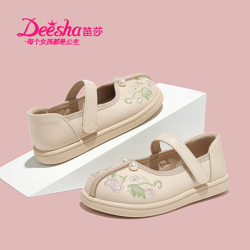 笛莎ブランドの女の子の国風お姫様靴2024春の新しい女の子の漢服のチャイナドレスの靴の小さい靴
