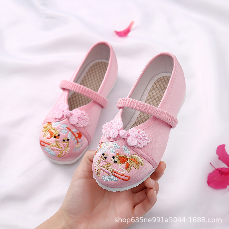 女の子の漢服の靴の子供の刺繍の靴の柔らかい底の時代の靴の民族の風の表は靴の中国風を演出します。