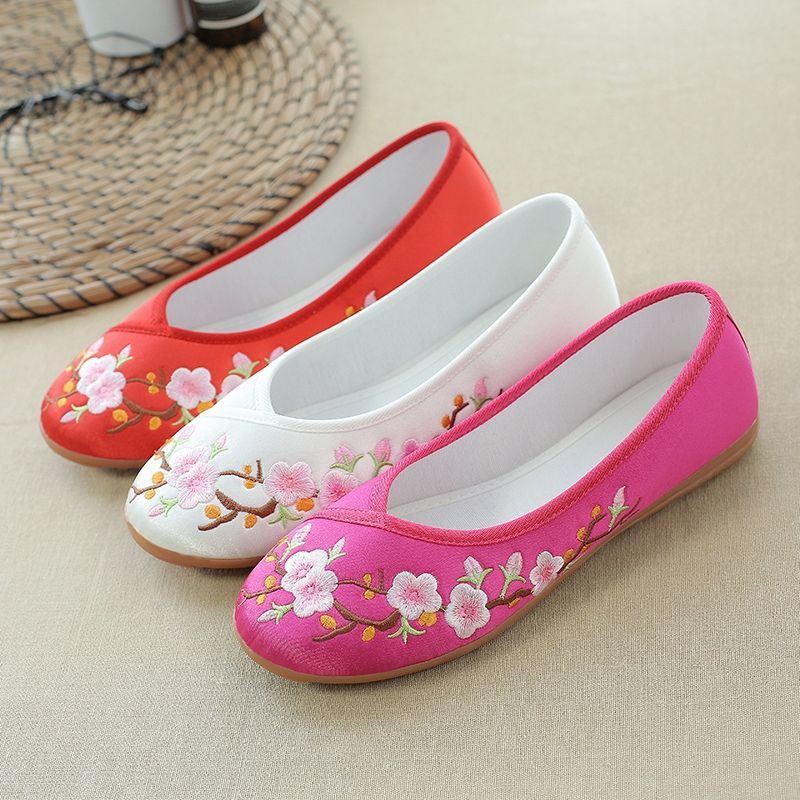 女の子の刺繍靴子供の伝統的な布靴は浅いです。