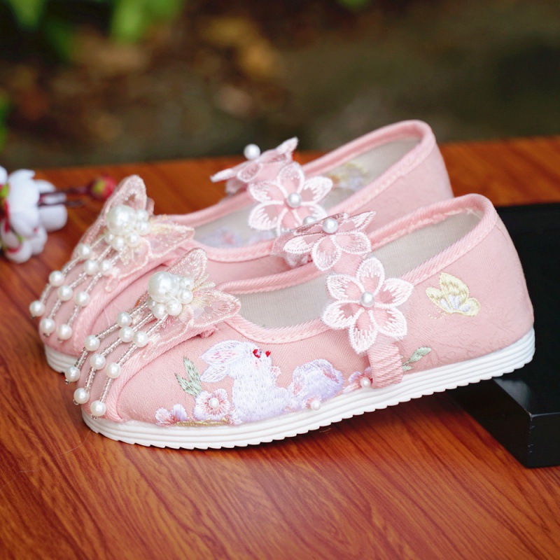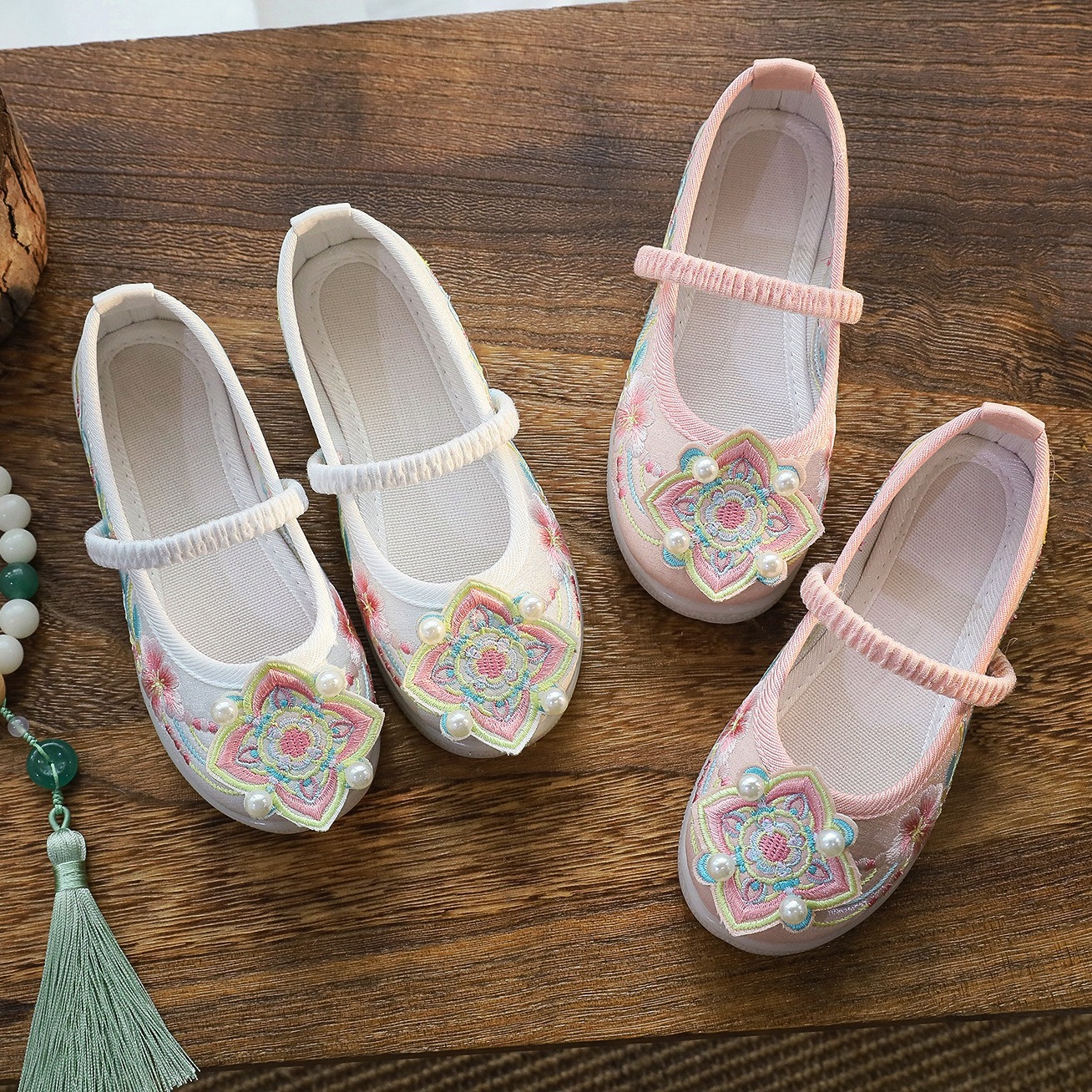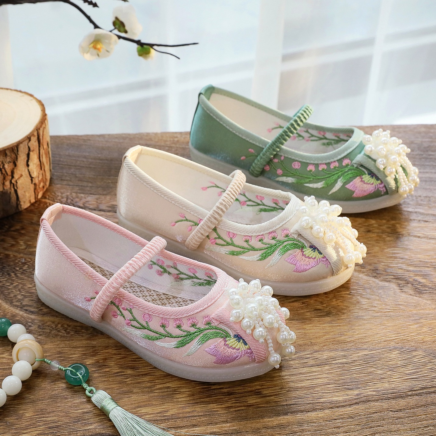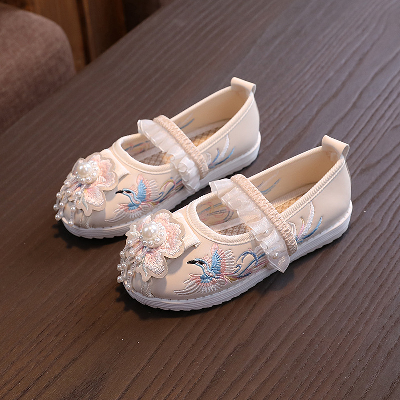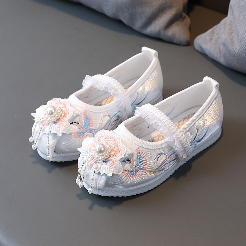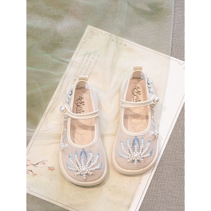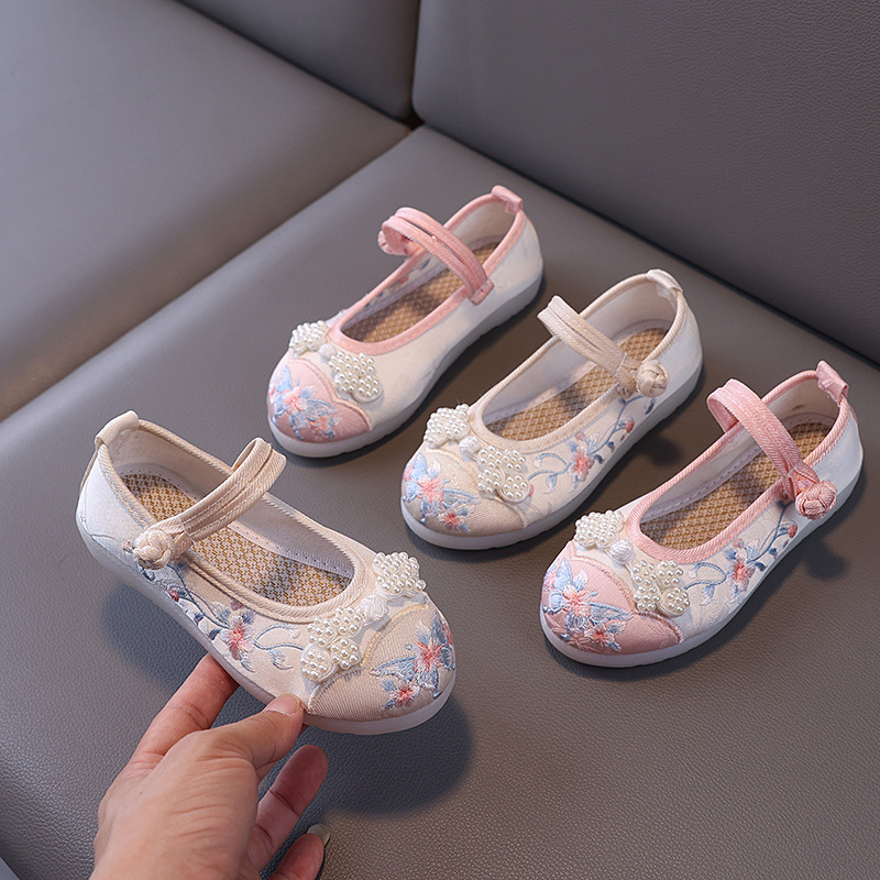 女の子の漢服靴民族風子供のダンスの布の靴は時代の靴の子供の刺繍の靴の真珠を緩めて古風を緩めます。