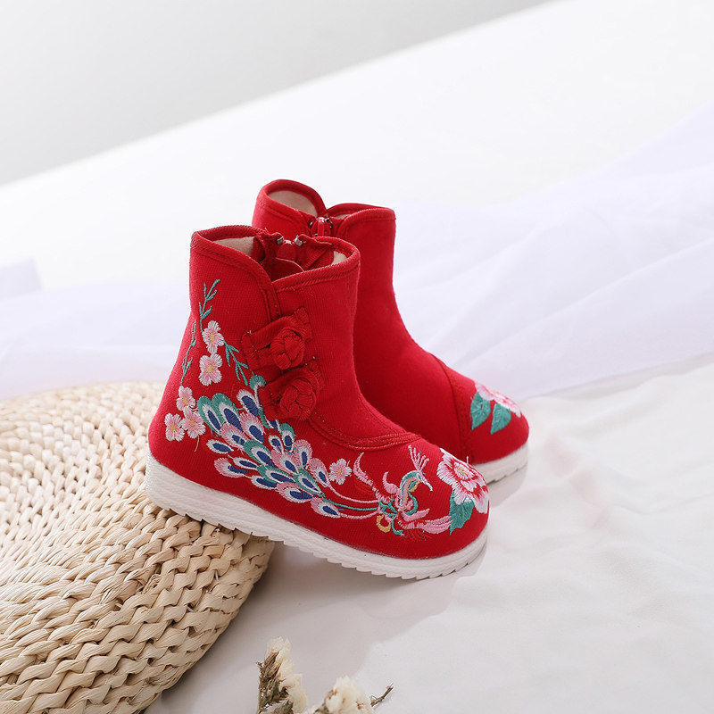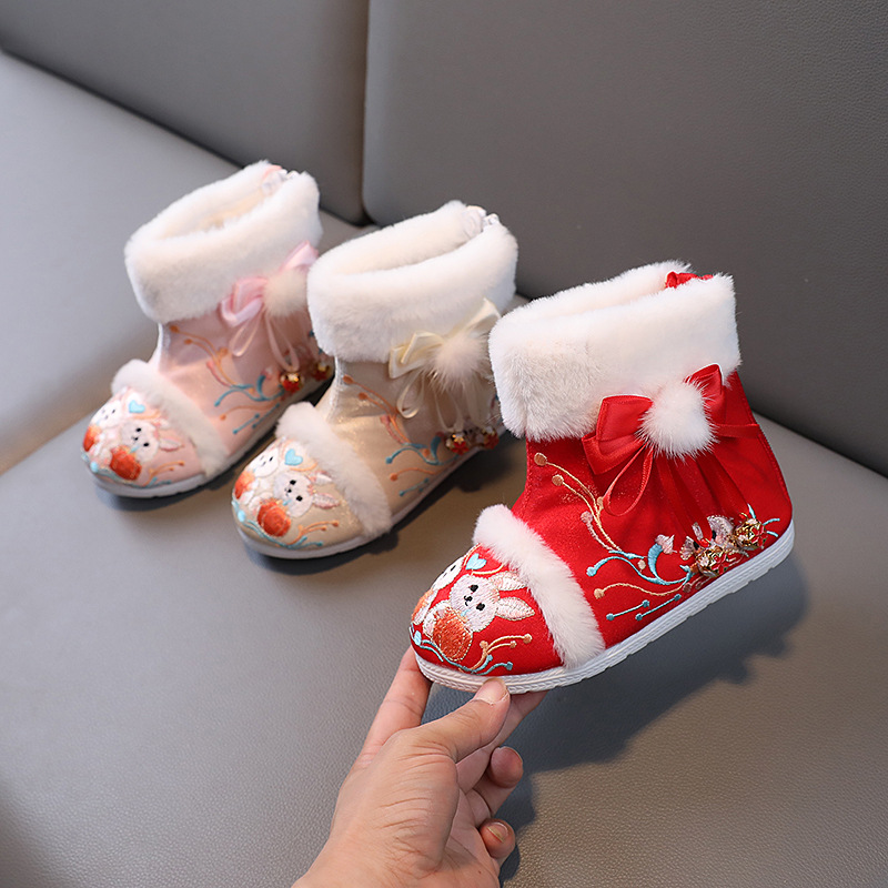 古い北京布靴冬の子供の刺繍靴とベルベットの女の子の漢服靴ブーツ中国風唐装拝年ショー