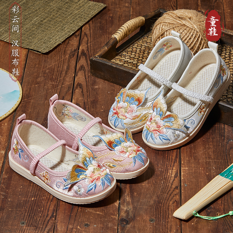 漢服刺繍靴少女老北京児童布靴牛筋底ダンス靴中国風時代刺繍児童靴