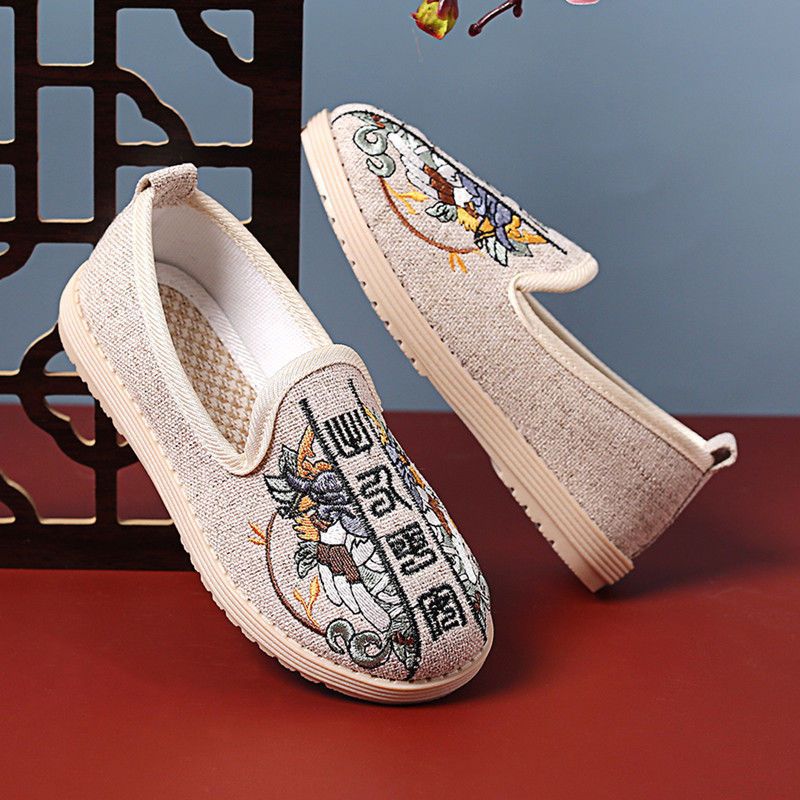 古い北京の子供の手作りの布靴の民族風の刺繍の靴の学生の時代の漢服は靴の中国風の男の子の靴を演出します。