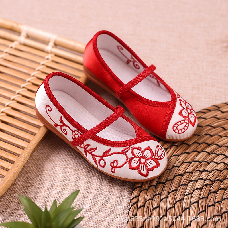 漢服刺繍靴女の子民族風子供時代刺繍靴中国風手作り布靴牛筋底ダンス靴