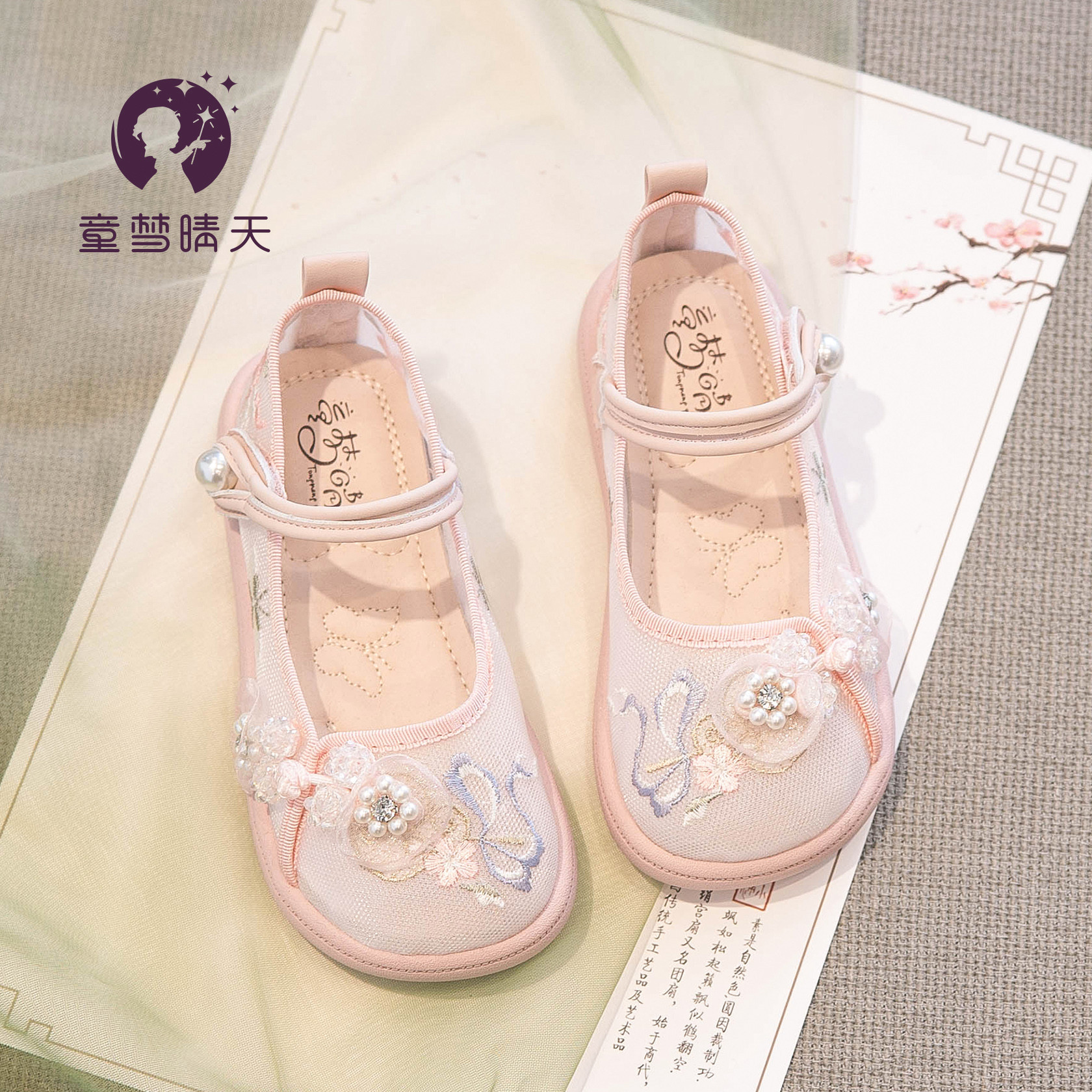 荷2024夏の新型古風柔らかい底のネットの赤ちゃんの布の靴の超仙は子供の刺繍の靴の漢服の靴を演じます。