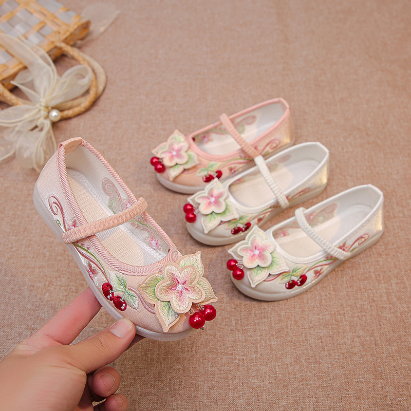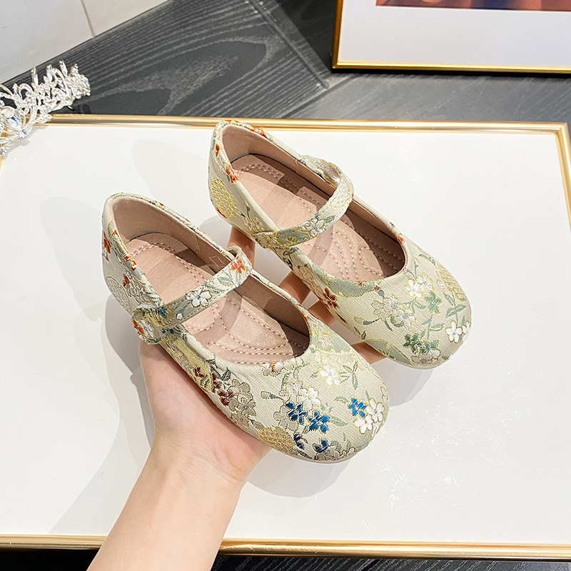 女の子の漢服の靴2024の新型の春と秋の子供の靴の柔らかい底の王女の靴の小さい女の子の古風な新しい中国式の靴