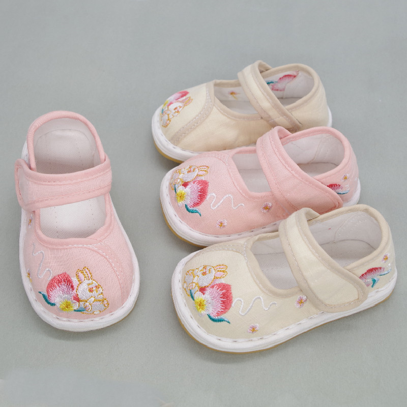 (玉兎) 女の子刺繍靴子供漢服靴北京手作り赤ちゃん古風時代子供ショーネット靴