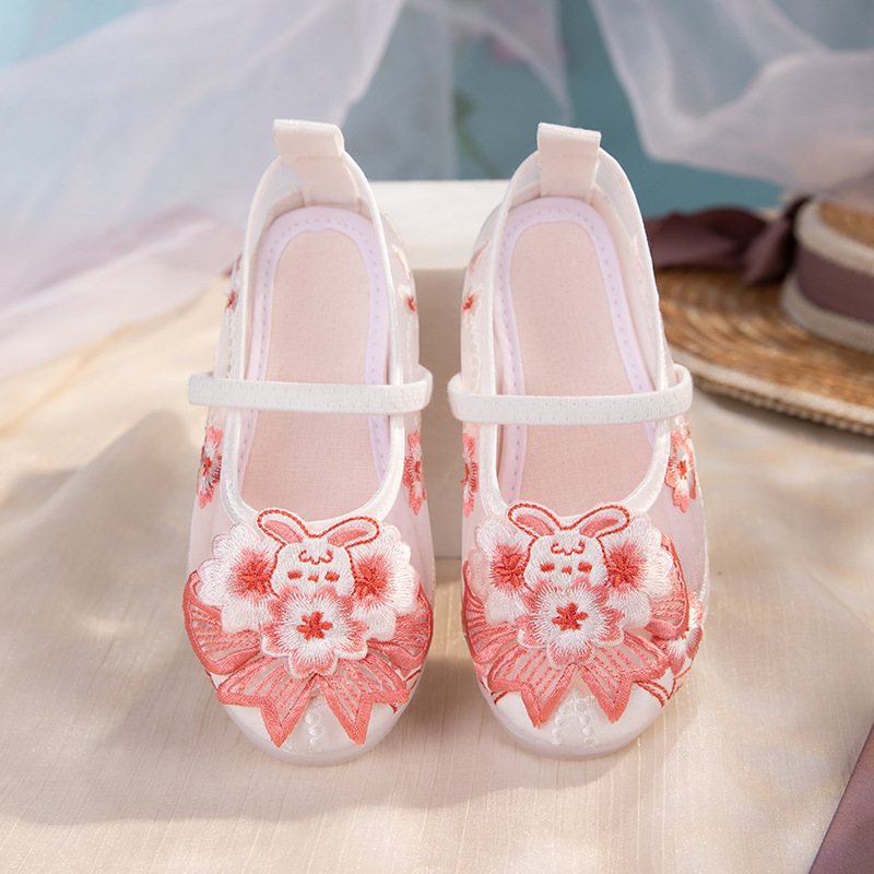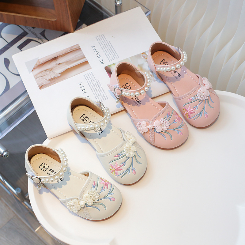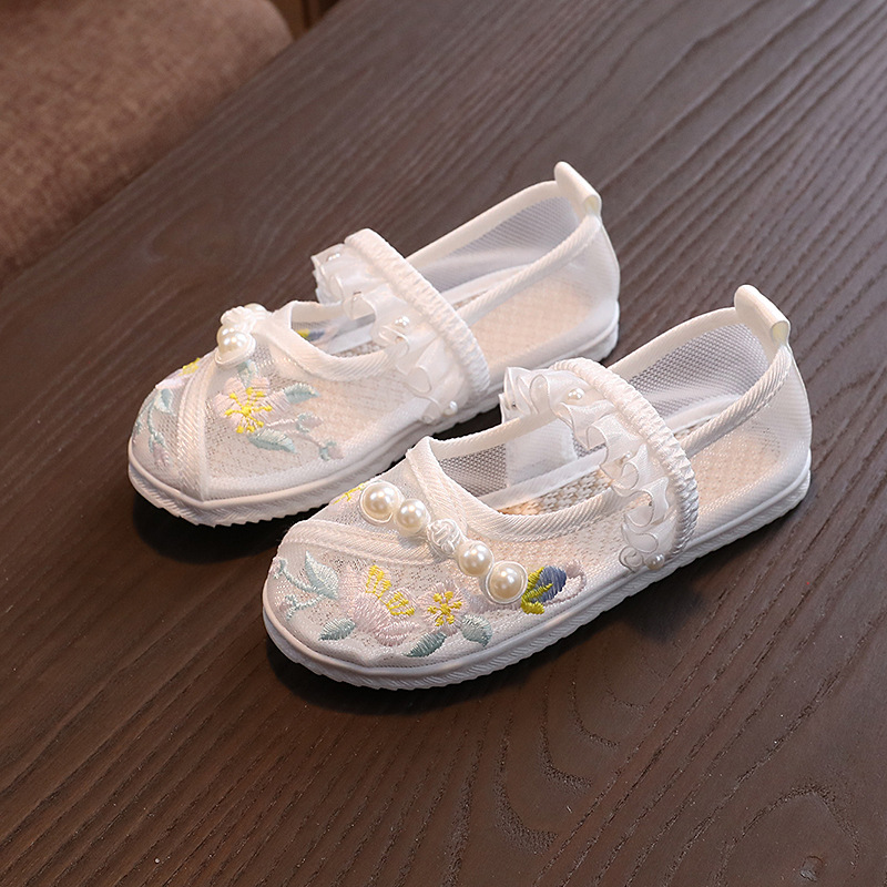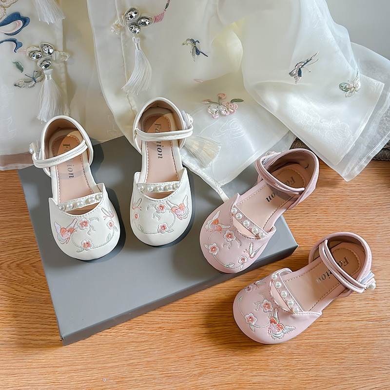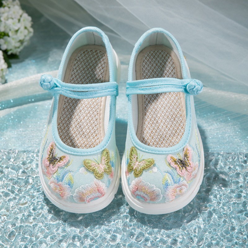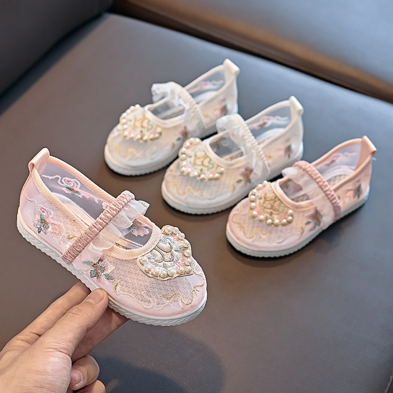 2024夏の新しい女の子の王女の靴の子供の靴の国風の刺繍の漢服の靴の夏のタイプの女の子の子供の靴の小さい靴