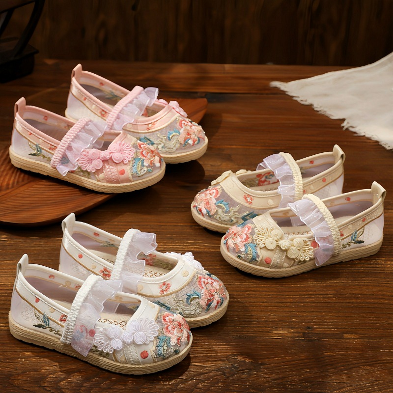 古風中国風刺繍プリンセス靴ソフト底2024年夏のファッションかわいい子供メアリージェーン気質シングル靴