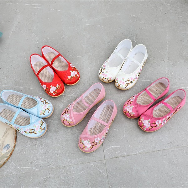 漢服刺繍靴女の子古い北京布靴民族風時代刺繍靴牛筋底児童ダンス靴童靴