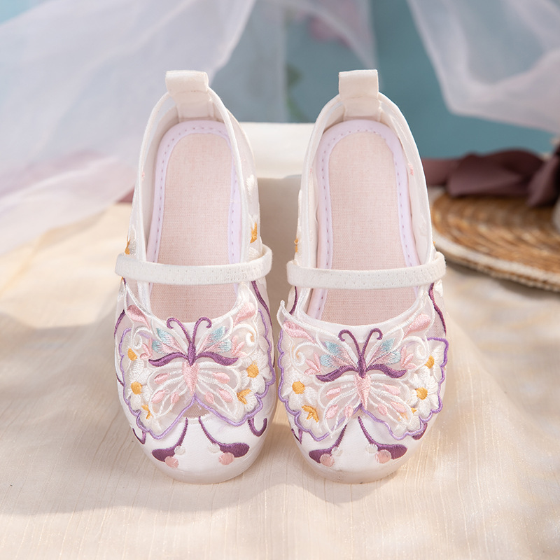 蝶2024夏新作紫古風布靴子供用ソフト底刺繍靴中国風子供漢服靴女