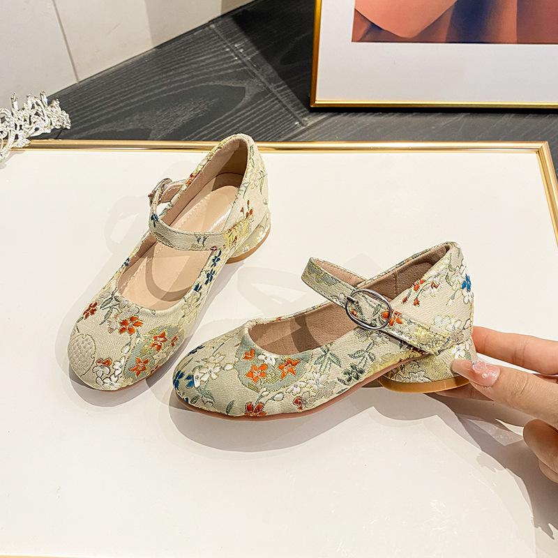 子供の刺繍の靴の漢服の靴の女の子の夏の2024新型の古風の子供の靴は馬の顔のスカートの王女の国風の靴を配合します。