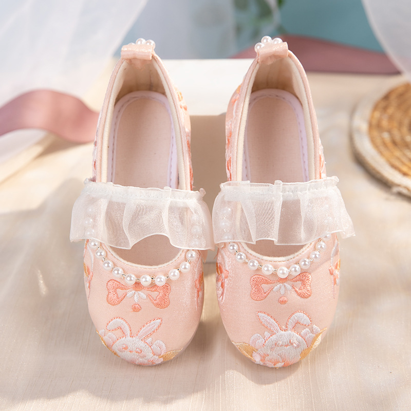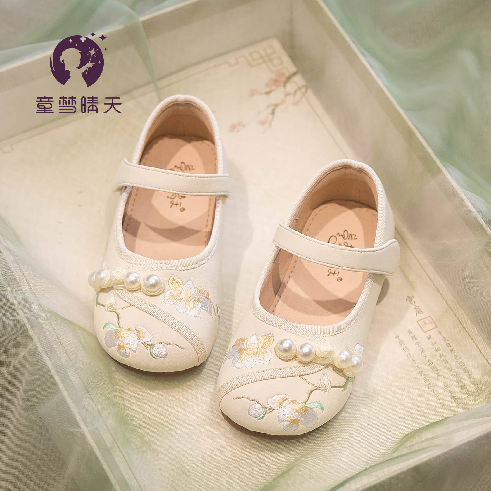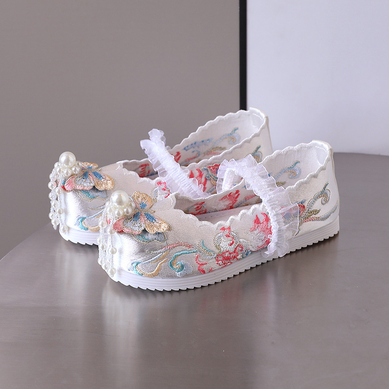 女の子の漢服の靴2024新型の春の子供の靴の国風の靴の柔らかい底の刺繍の靴の春秋の女性の宝の古風の靴
