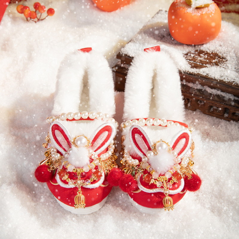 福兎年2023冬の新型児童重工漢服靴少女と古風かわいい保温布靴