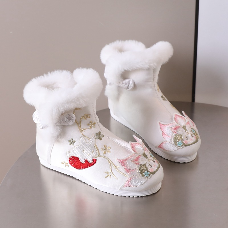 【彩蝶】2023冬の新型漢服ブーツ児童ベルベット靴中国風刺繍靴古着雪地靴