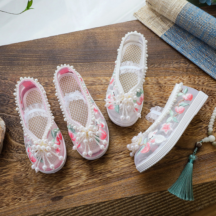 女の子玉珠刺繍靴古風古着漢服靴老北京布靴王女靴民族風表演出服