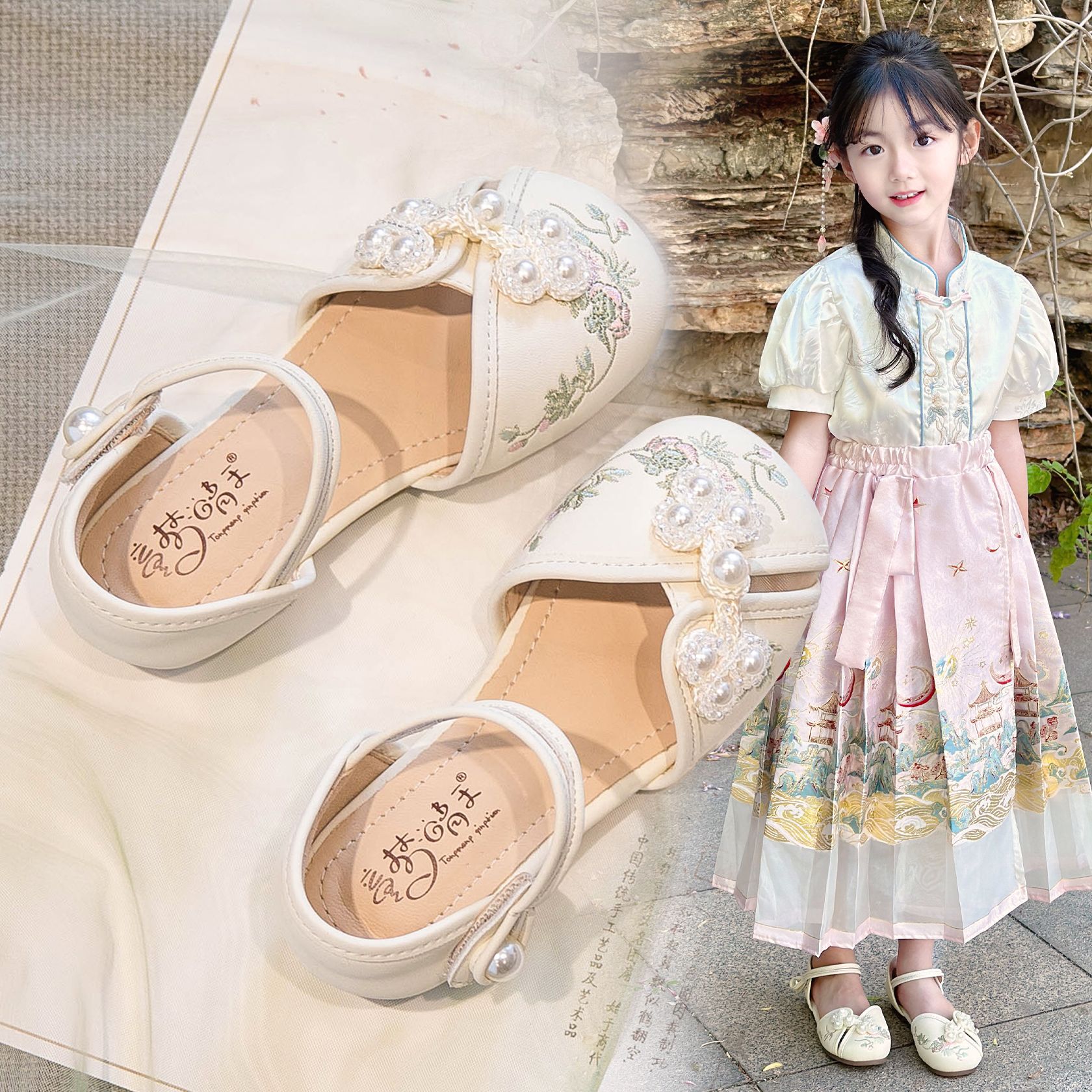 女の子の靴、漢服の靴、夏の国民風サンダル、子供用馬面スカート、新しい中国風の刺繍靴、古代風の子供靴
