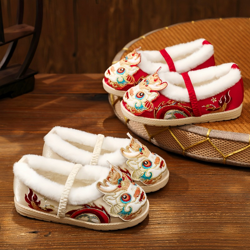 米楽2023冬の新型赤ちゃん布靴かわいい新年の民族風と綿靴漢服靴龍年