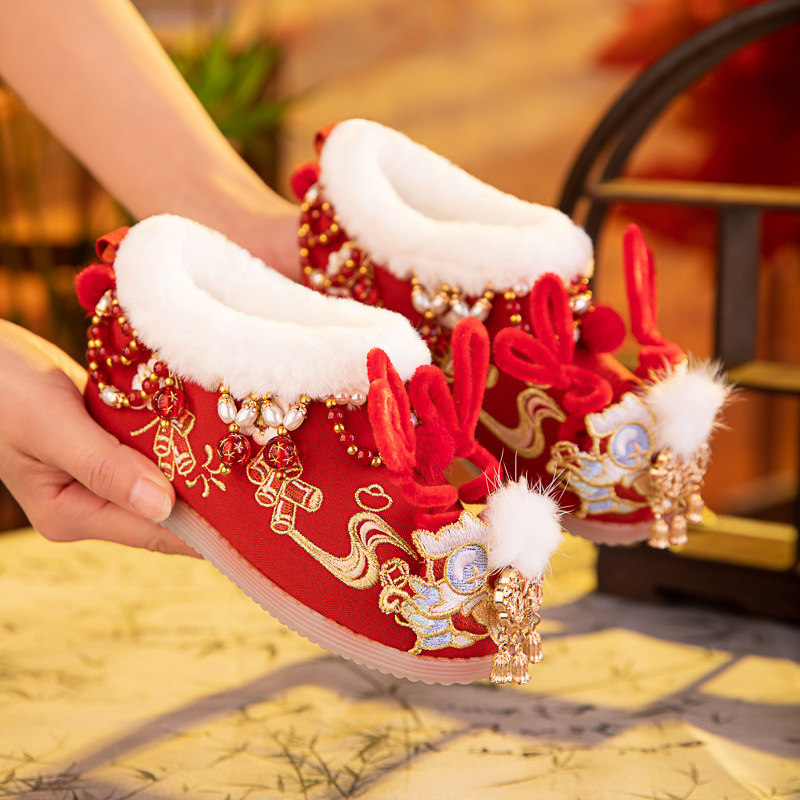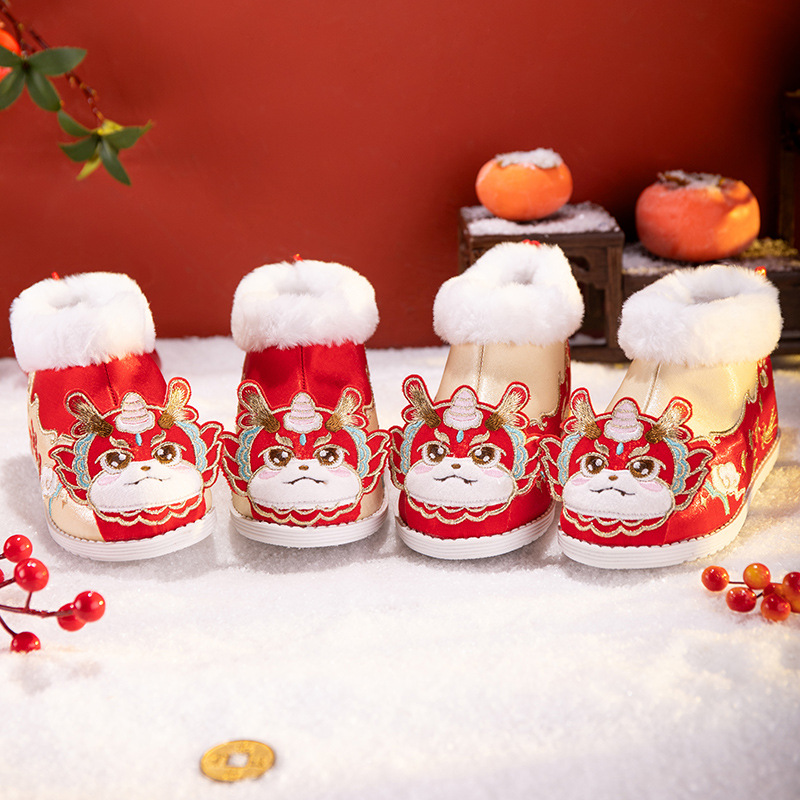 福気滔滔2023冬の新型古風赤ちゃん童靴拝年靴龍年加毛漢服靴龍年
