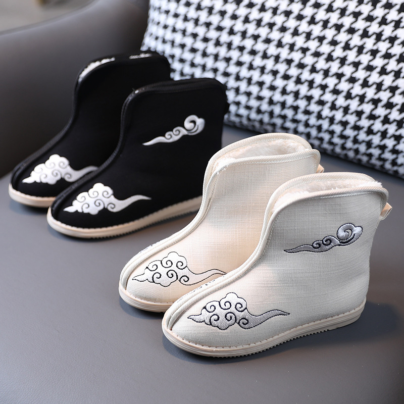 言葉歓2023冬の新型児童石けん靴男女同服綿靴古着布靴民族風漢服靴龍年