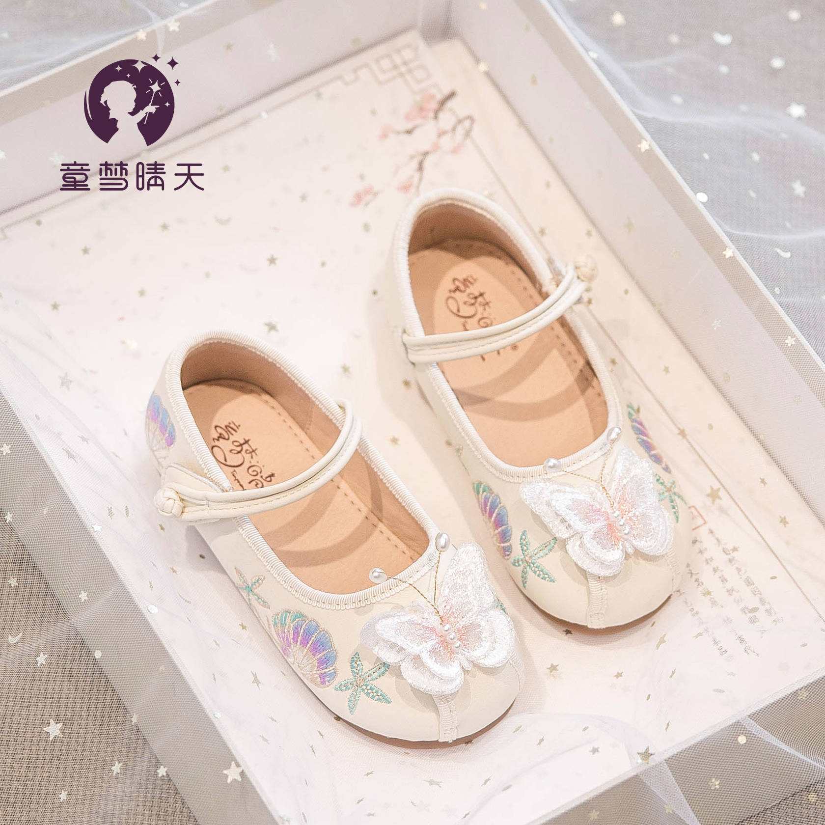 秋季汉服鞋子女童蝴蝶古风古装儿童绣花鞋民族风宝宝表演布鞋童鞋