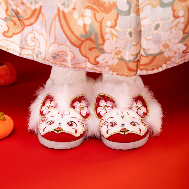 いちごウサギ綿2023冬の新型北京児童布靴中国風刺繍靴古風漢服靴女
