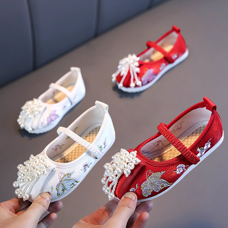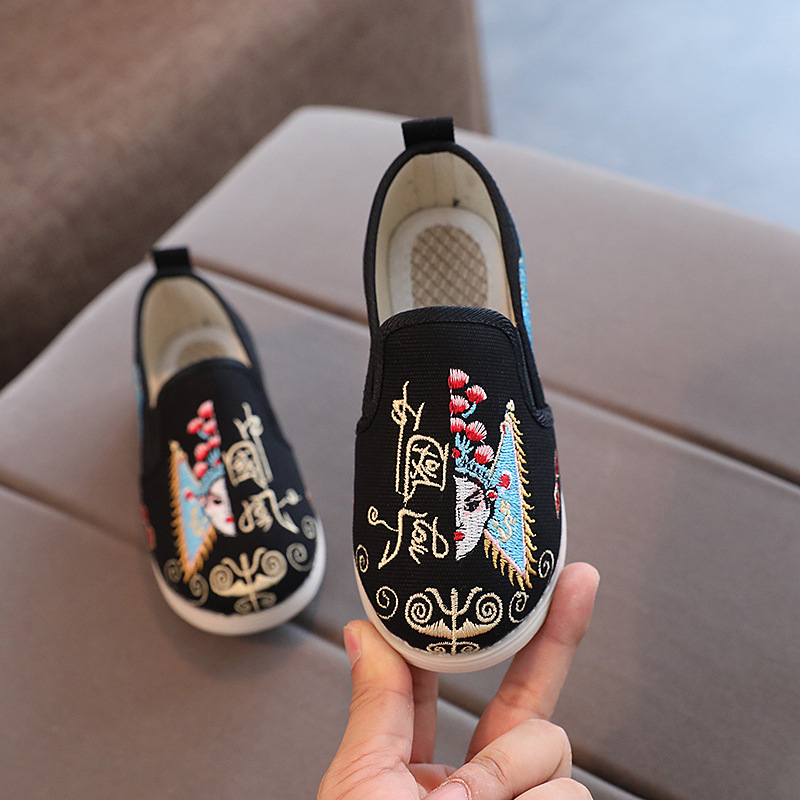 ● 月2024春の新型中国風刺繍古い北京児童布靴時代刺繍靴公演漢服靴
