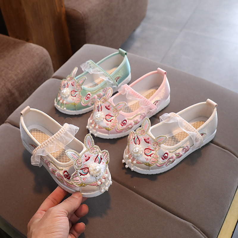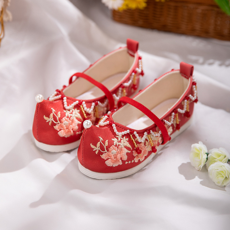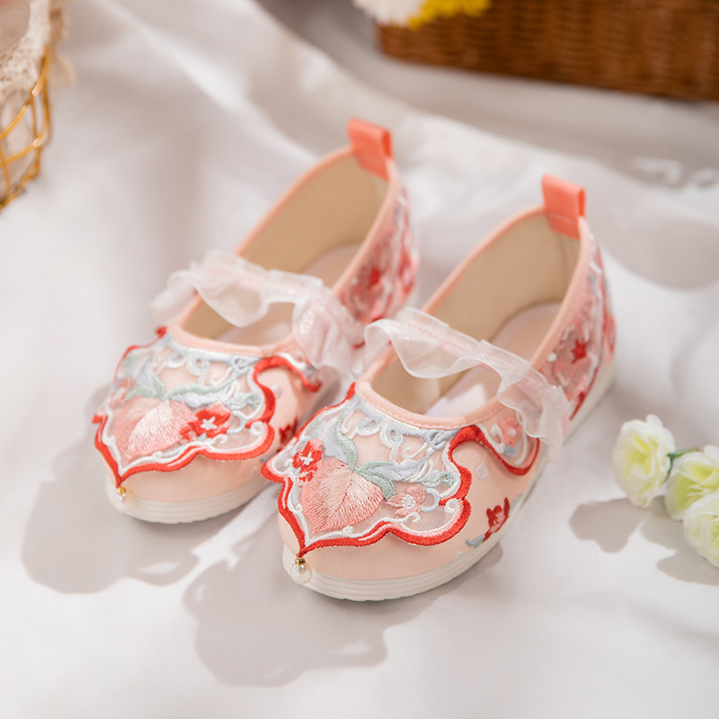 女の子の漢服の靴の新型の春夏の子供の靴の国風の刺繍の靴の春と秋の女性の赤ちゃんの新年の古風の靴