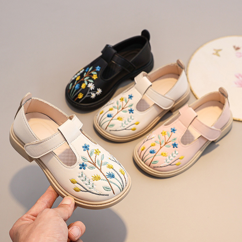 女の子の漢服の靴の国風の靴の子供の靴の2024の新型の春秋の赤ちゃんの時代の靴の靴の靴の古風の刺繍
