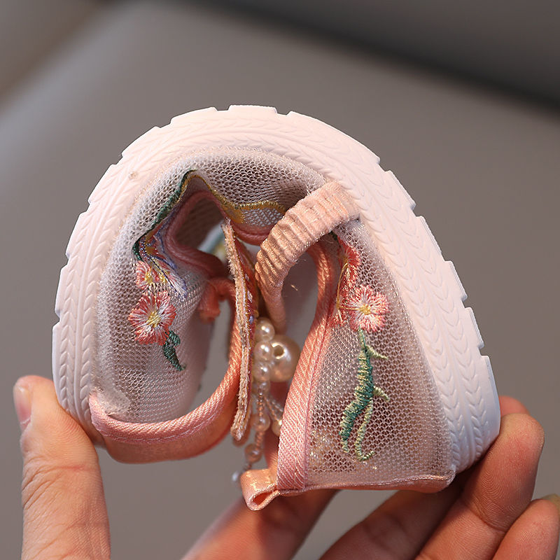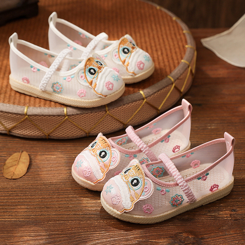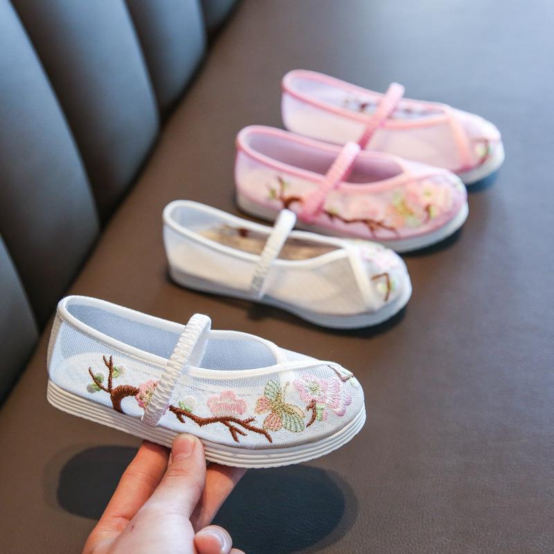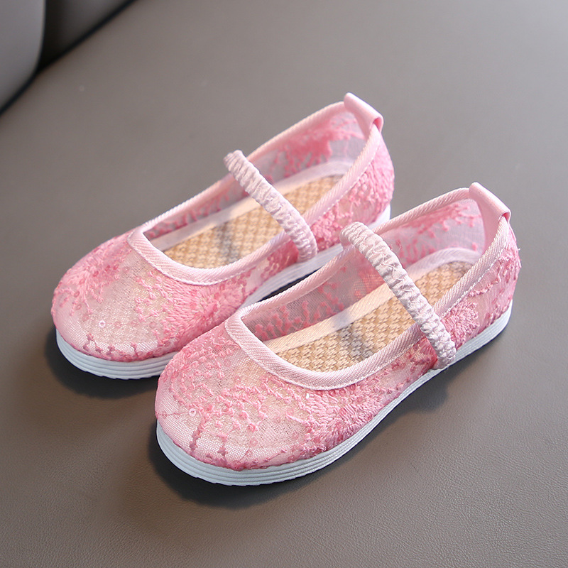 女の子の漢服靴ネット糸通気性夏サンダル子供刺繍靴中国風古い北京布靴古着靴