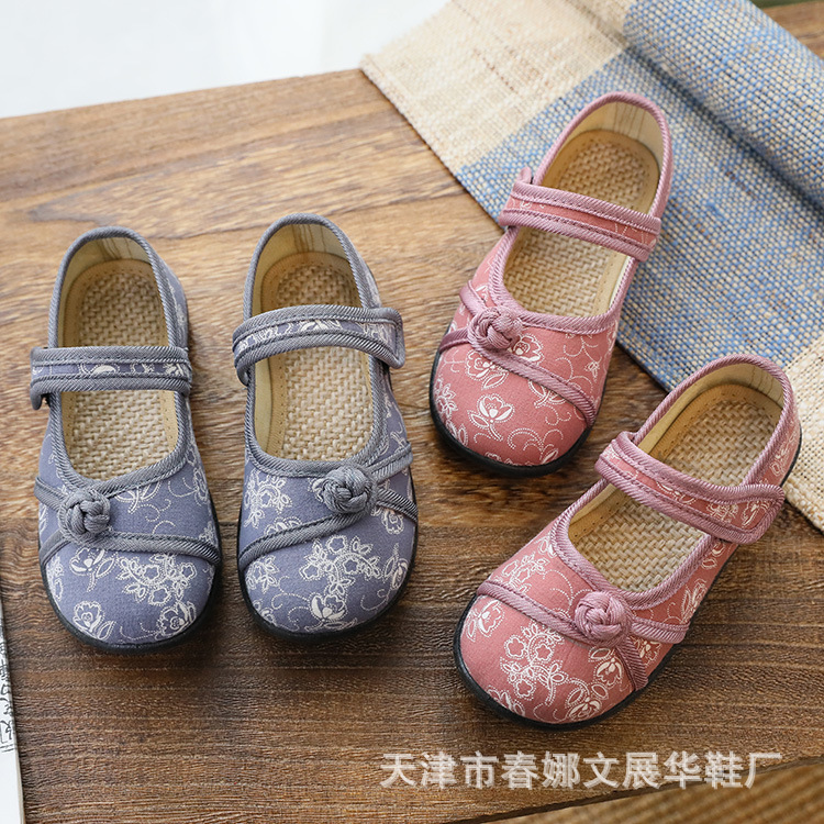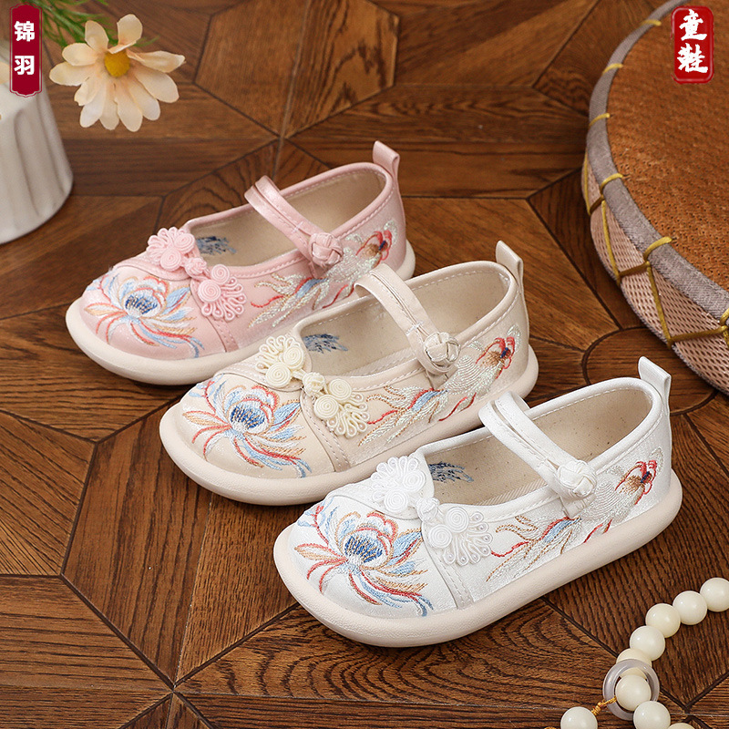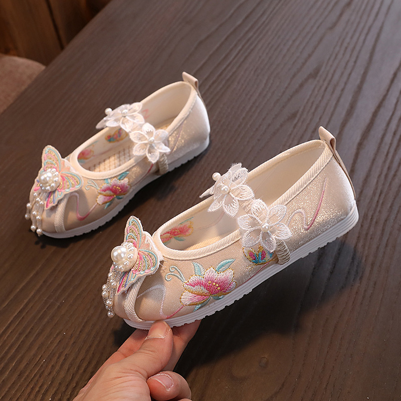 女の子の漢服靴、民族風、子供用古装刺繍靴、小さな女の子のプリンセス、古北京の手刺繍布靴