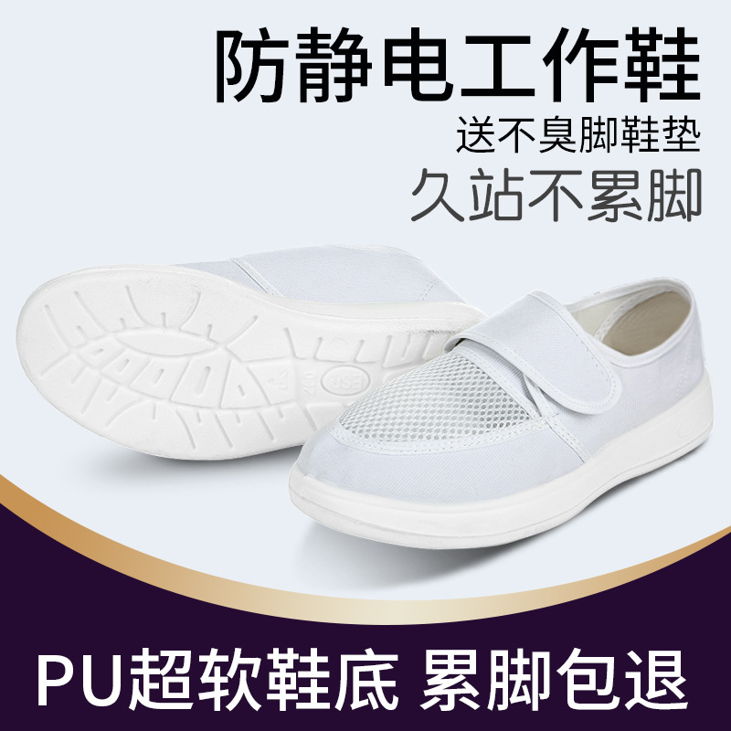 新手袋クリーン静電気防止靴pu厚手工場軟底作業靴通気電子工場男女夏防