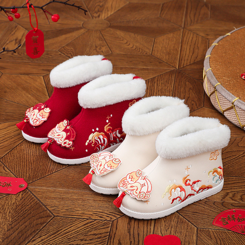 雲2023冬の新型漢服靴刺繍子供手作り布靴古風古着龍年拝年靴