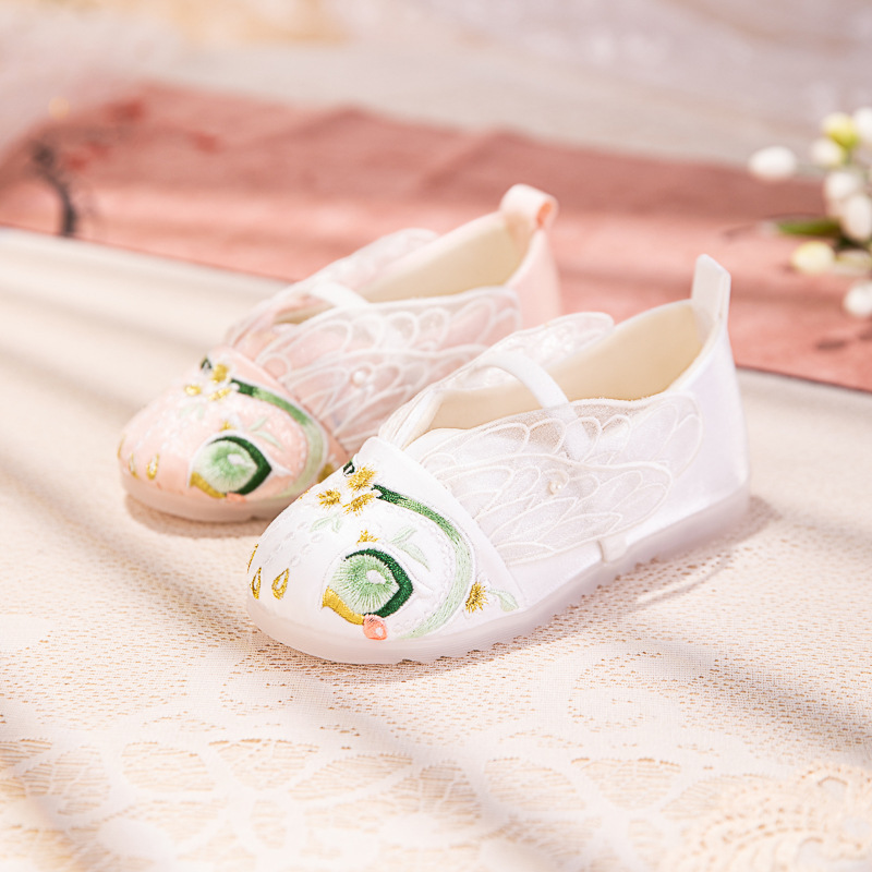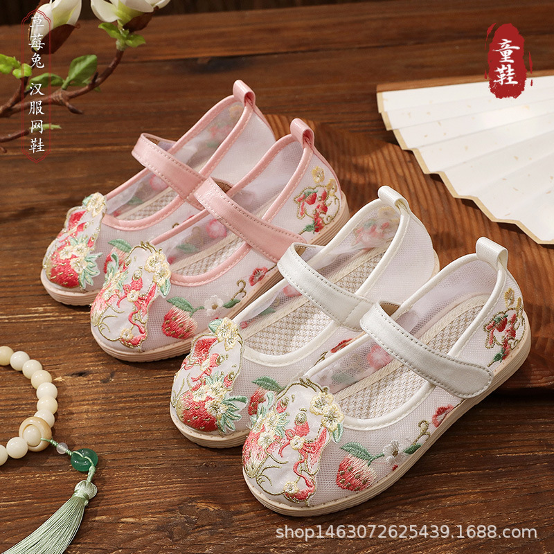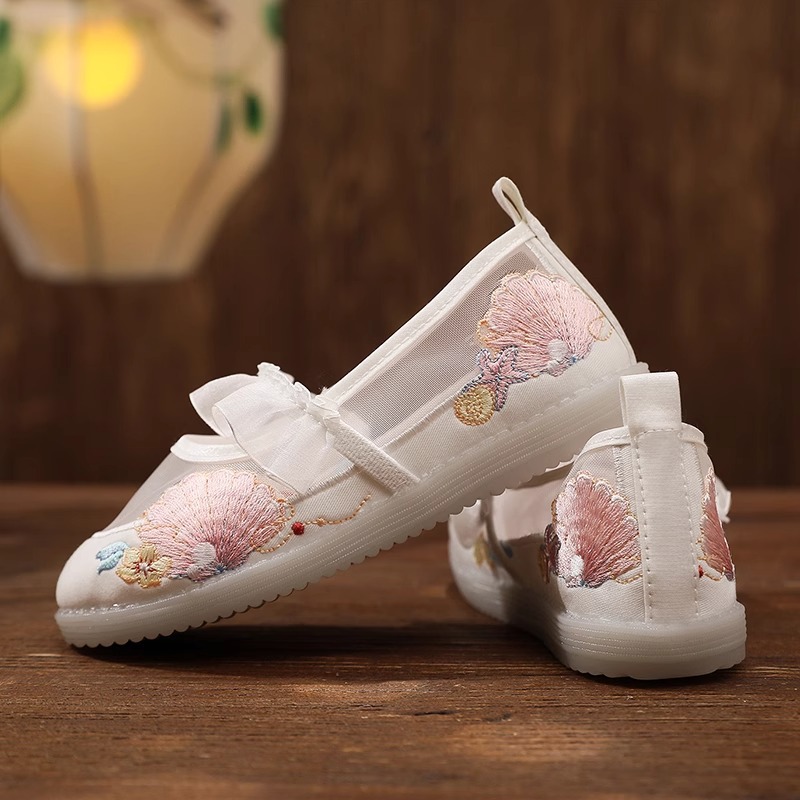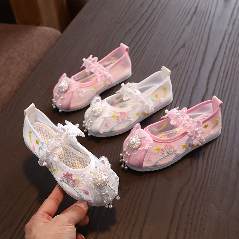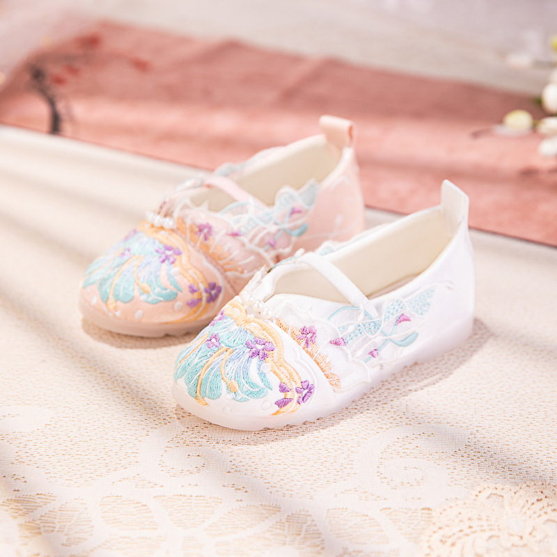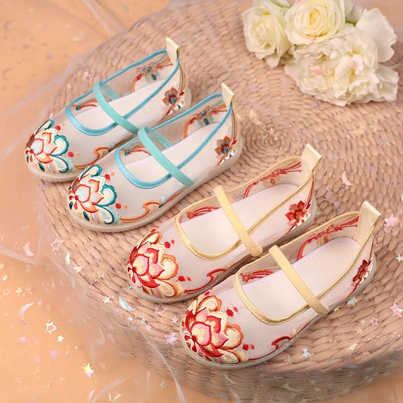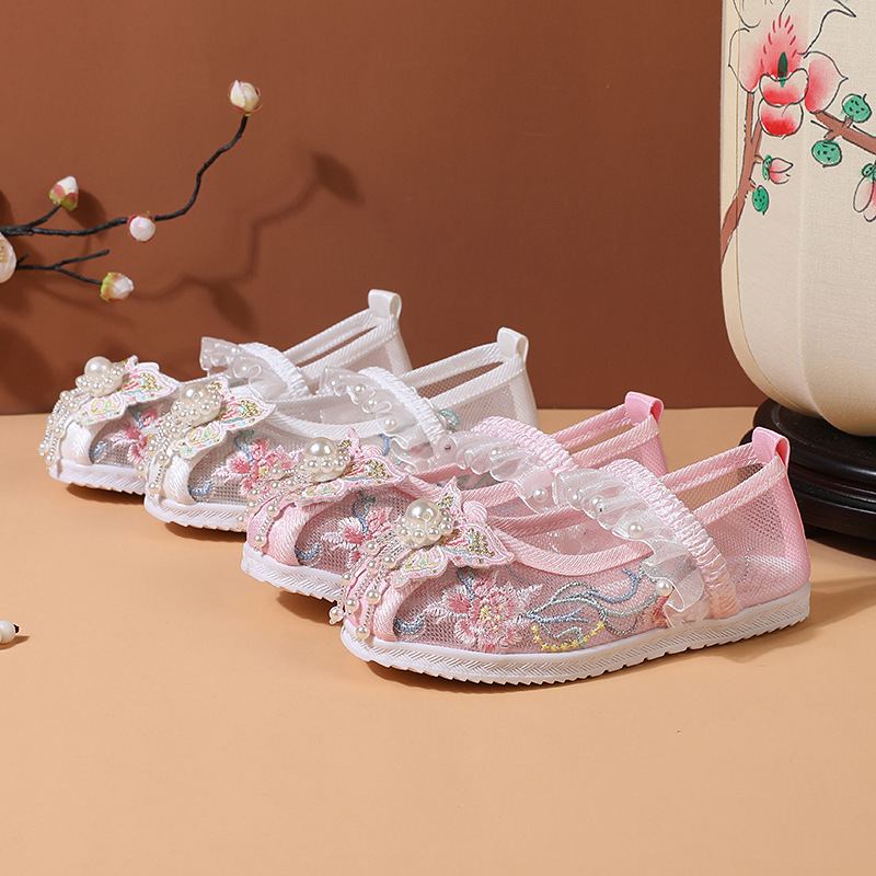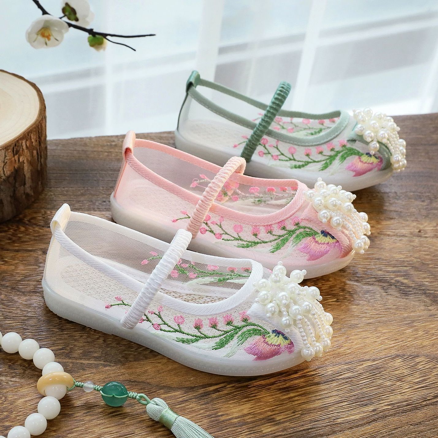 玄羽芸 カイテ ネット生地女児漢服靴 馬面裙靴 新中式滑り止め女児刺繍靴 古風靴