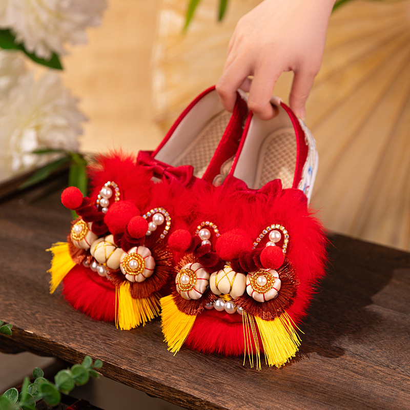 2025新型の女の子の漢靴の子供の中国風の時代の新しい中国式の唐装の靴の女の子の春秋の金はライオンの子供の靴を目覚めさせます。
