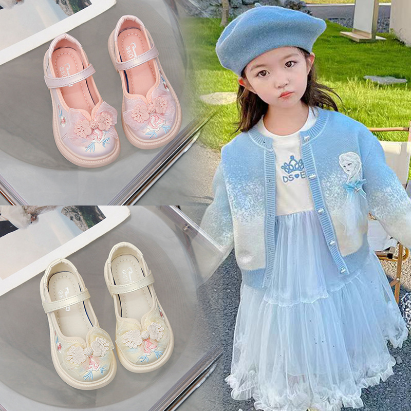 女の子の漢服の靴の子供の靴2025春秋の新型の柔らかい底の国風の靴の小さい革靴の古風の子供の靴の刺繍の靴