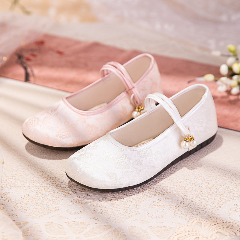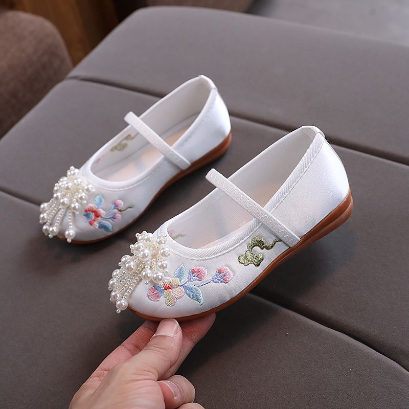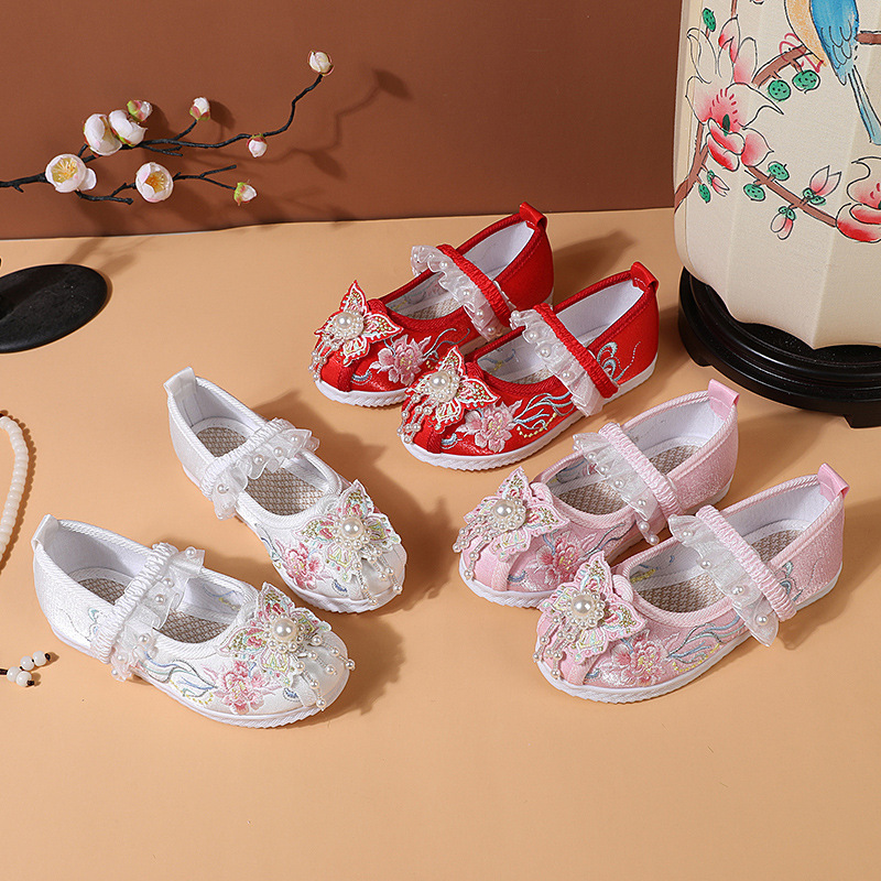 女の子の漢服靴民族風子供のダンスの布の靴は時代の靴の子供の刺繍の靴の真珠を緩めて古風を緩めます。