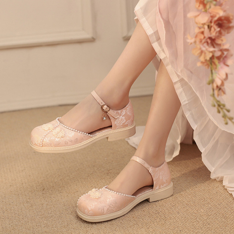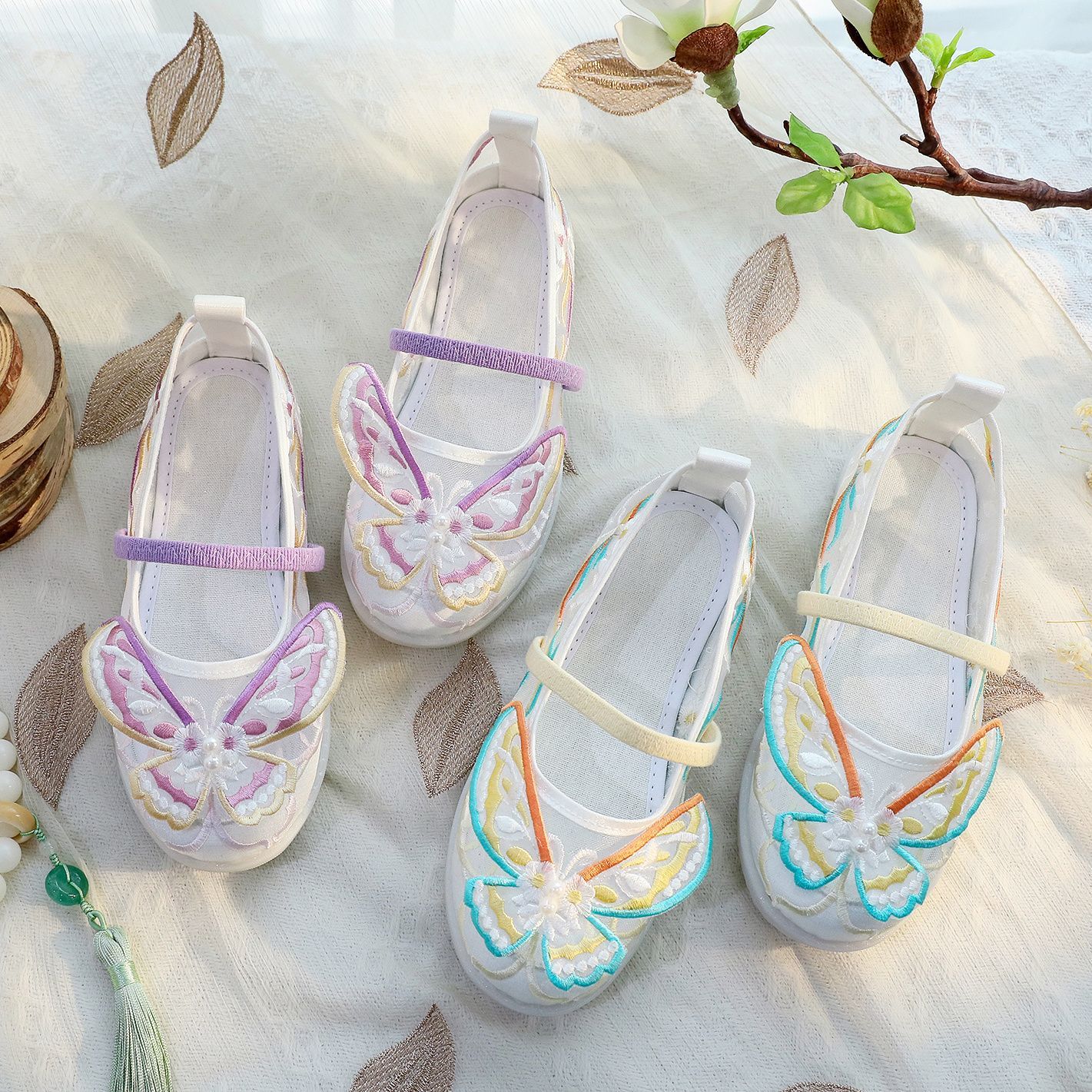 恋蝶2025春夏の新型童靴女性時代劇古風平底刺繍靴と漢服靴