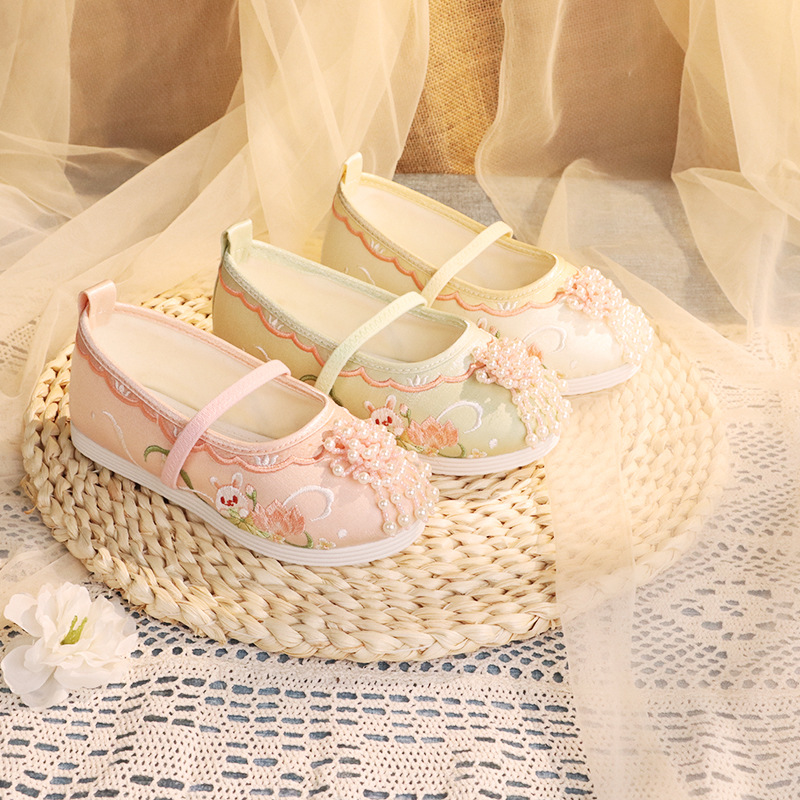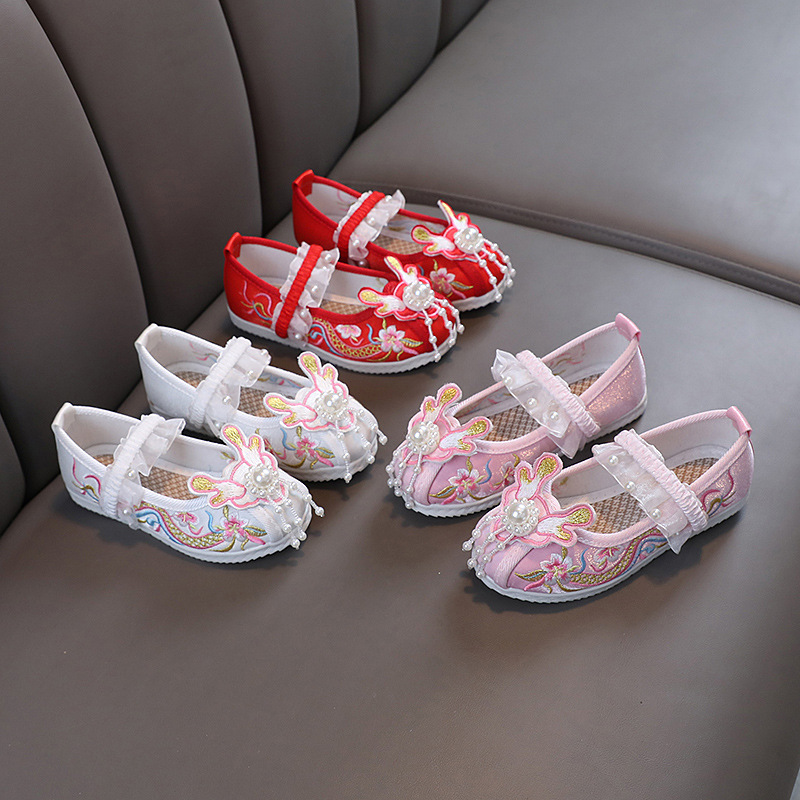 軒羽芸米兎女児漢服靴新作春秋中国風子供刺繍靴姫赤ちゃん時代古