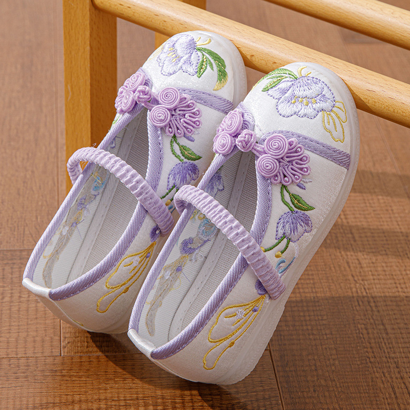 女の子の漢服の靴春と秋 2025 新しい手作り古い北京布靴子供の少数民族の古代スタイルの刺繍靴