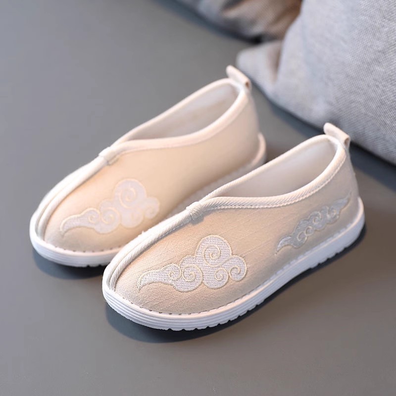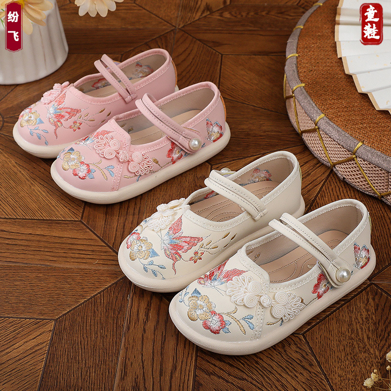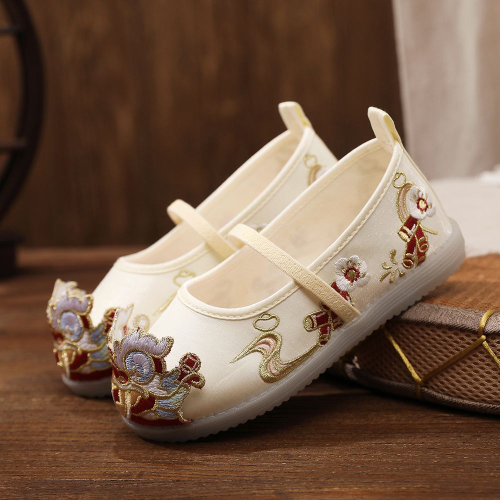 2025春夏の新しい子供靴の女性時代の古風の底の刺繍の靴は漢服の靴を配合します。