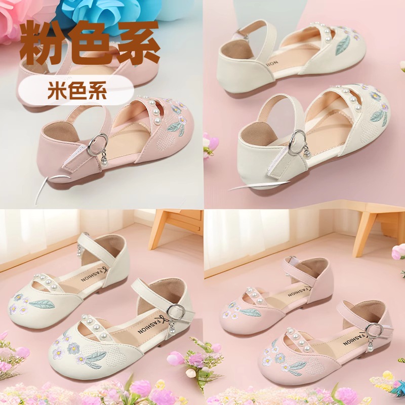 女の子サンダル 2025 新しい夏の女の子韓服靴包頭中国風刺繍ノンスリップソフト底子供プリンセスシューズ