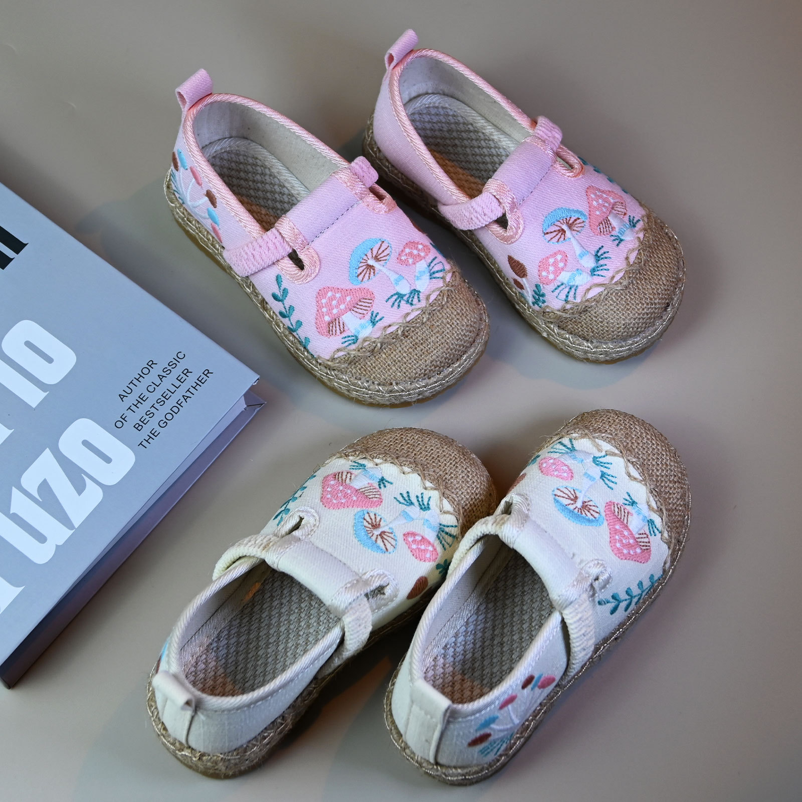 漢服の靴の子供の古い北京の布の靴の手作りの復古の綿麻2025新型の民族の刺繍の靴の女の子のキャンバスの靴