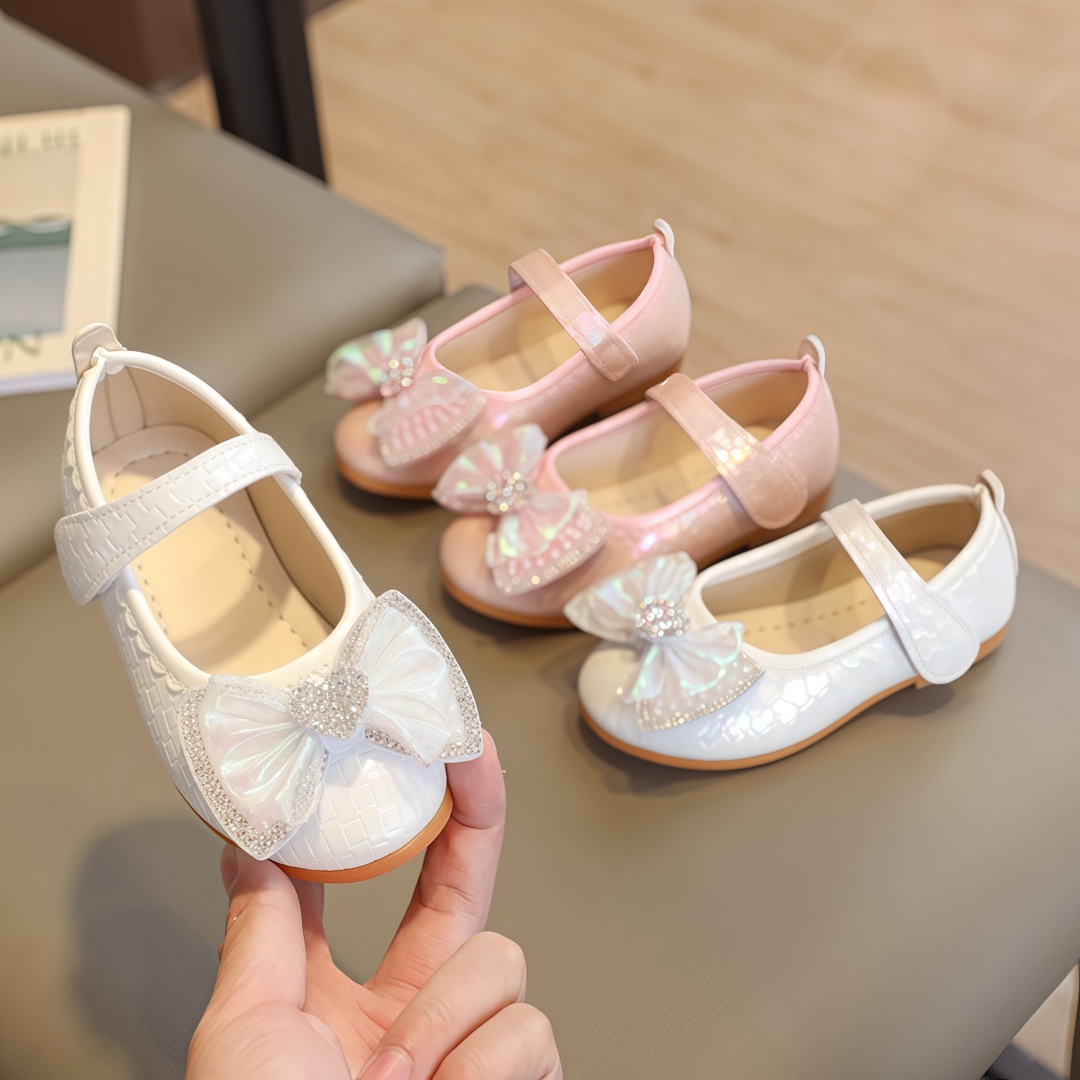 女の子用プリンセスシューズ 春秋2025新作 ソフトソール革靴 リボン付き 幼児用ベビーシューズ おしゃれな子供用シングルシューズ